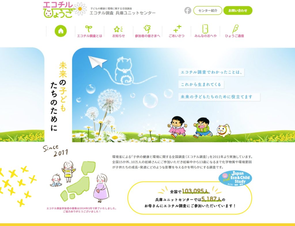 環境省の全国調査「エコチル調査兵庫」のWEBサイトを制作いたしました!