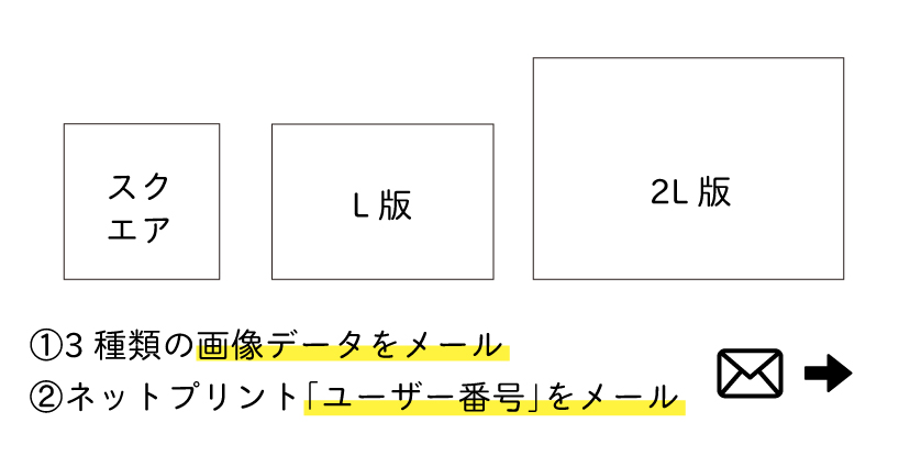 このオプションを一緒に購入いただくと!SNS用スクエアサイズに加え、L版、2L版サイズが追加!さらに、ローソンですぐに印刷できる「ユーザー番号」を発行します。お近くのローソンで何枚でも印刷できます!!